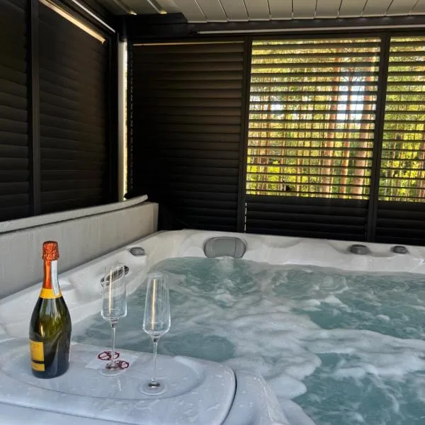 Osada Poli - Domek Panoramiczny nad Narwią z Prywatną Balią i Hydromasażem is located in Łachy and offers a garden. This apartment provides free private parking and private check-in and check-out.