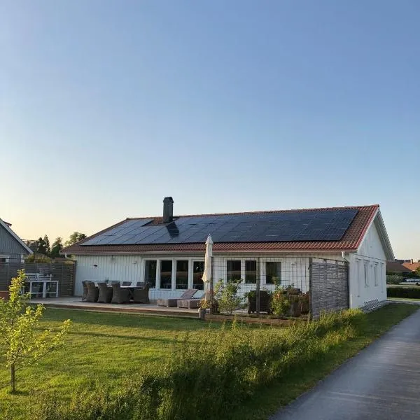 Superfint boende med havsutsikt, Tofta Strand beschikt over uitzicht op de zee, en biedt accommodatie met een terras en een balkon, op 3 minuten lopen van Tofta Strand.