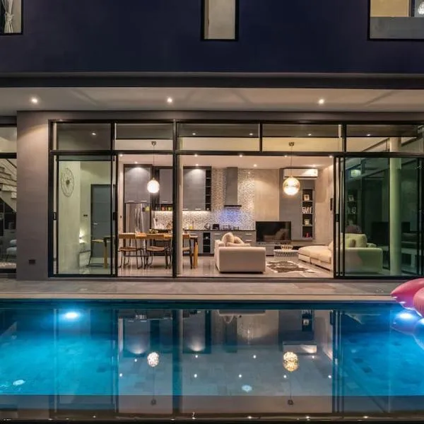 Modern 3BR Loft II Villa Private Pool Botanica is gelegen op 6,1 km van Wat Prathong, en biedt accommodatie in Ban Pak Lak met toegang tot een binnenbad.