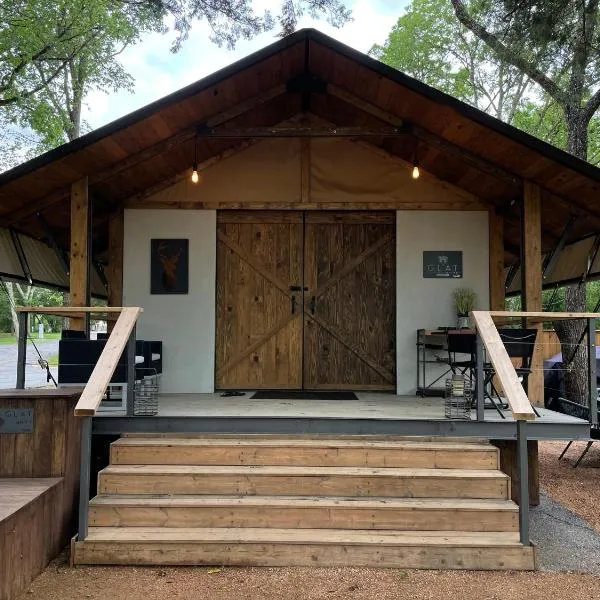 Premium Lakefront Cabin 1 The Armadillo is situated in Bastrop. Both free WiFi and parking on-site are accessible at the luxury tent free of charge.