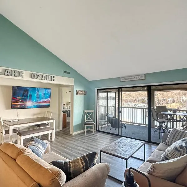 Lakefront Condo wDockDeckPools-Sleeps 6 bevindt zich in Lake Ozark en beschikt over accommodatie met airconditioning en een terras.