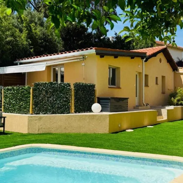 Boasting garden views, Petite Villa 4-6 personnes belles terrasses, piscine, plages offers accommodation with a seasonal outdoor swimming pool, a garden and barbecue facilities, around 7.5 km from...