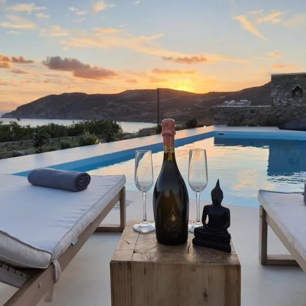 Set within 5.8 km of Mykonos Windmills and 5.9 km of Little Venice, Cavo Apollon Sunset Pool Villa features rooms with air conditioning and a private bathroom in Ornos.