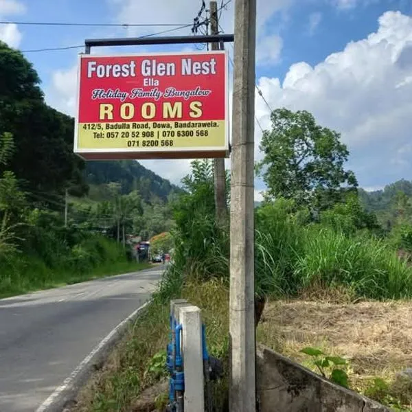 Το Forest Glen Nest είναι σε Bandarawela. Αυτό το κατάλυμα προσφέρει πρόσβαση σε μπαλκόνι και δωρεάν ιδιωτικό χώρο στάθμευσης. Το κατάλυμα διαθέτει κουζίνα.
