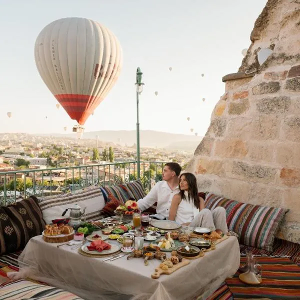 Αυτό το υπόσκαφο ξενοδοχείο στεγάζεται σε ένα πέτρινο κτήριο μεταξύ των σχηματισμών των Καμινάδων των Νεραϊδών και έχει πανοραμική θέα στο Goreme, την καρδιά της Καππαδοκίας.
