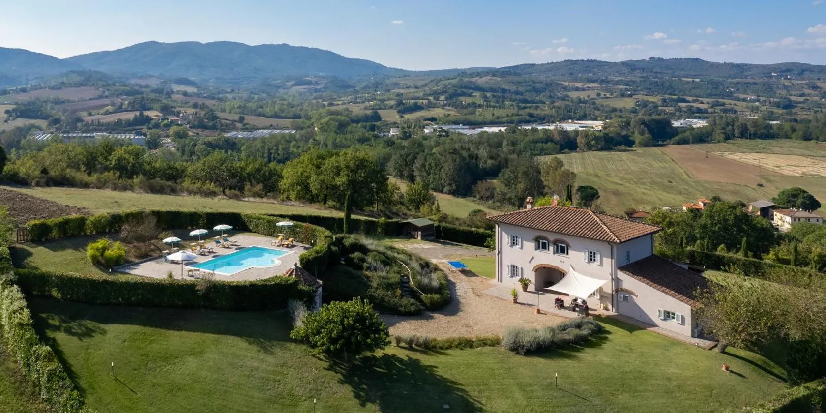 Surrounded by vineyards and offering a panoramic view of the Tuscan countryside, Fattoria Casagrande is a 16th-century farmhouse converted into spacious apartments.