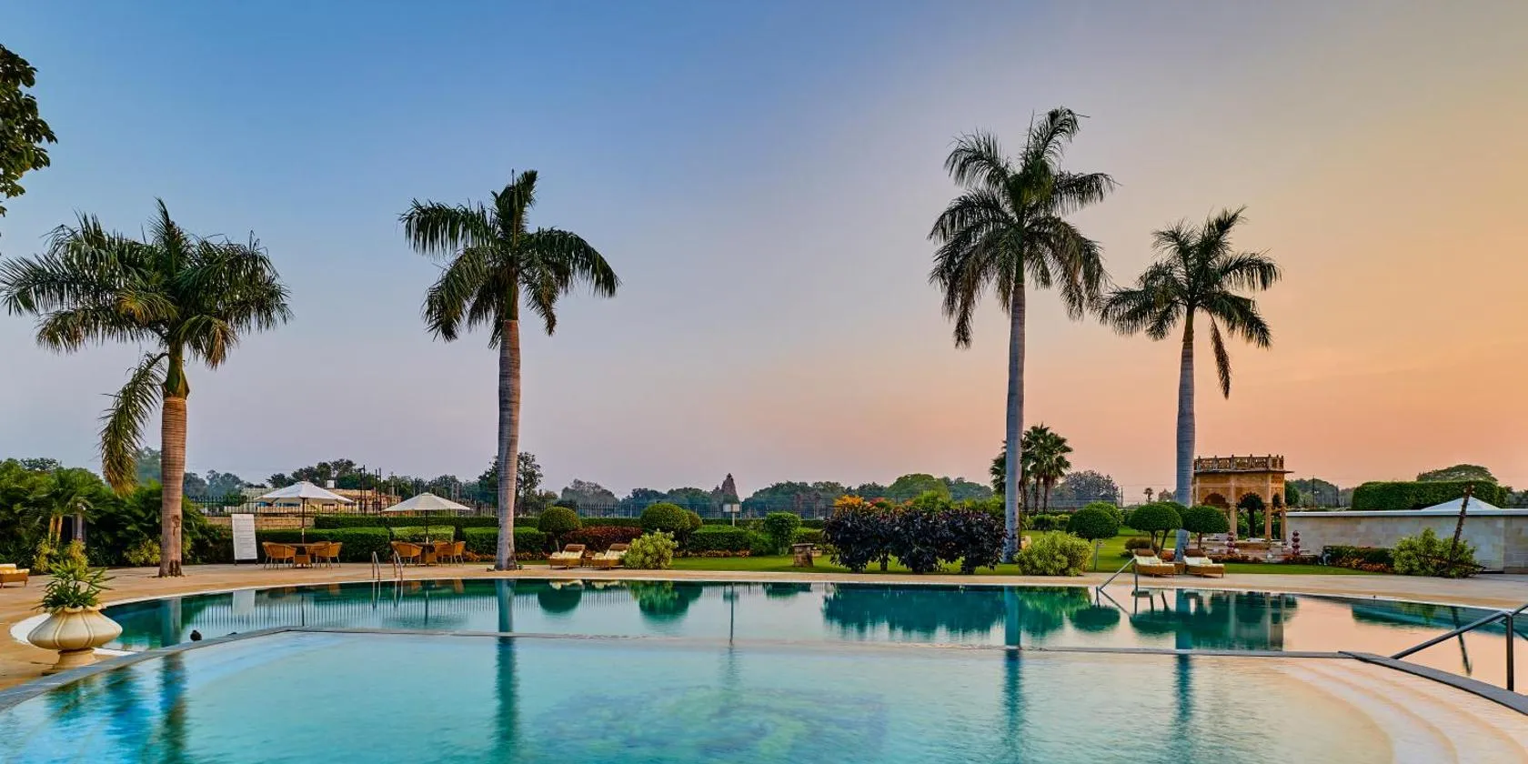 Hotel Chandela Khajuraho has an outdoor swimming pool, fitness centre, a garden and restaurant in Khajurāho. Featuring a bar, this 5-star hotel has air-conditioned rooms with a private bathroom.