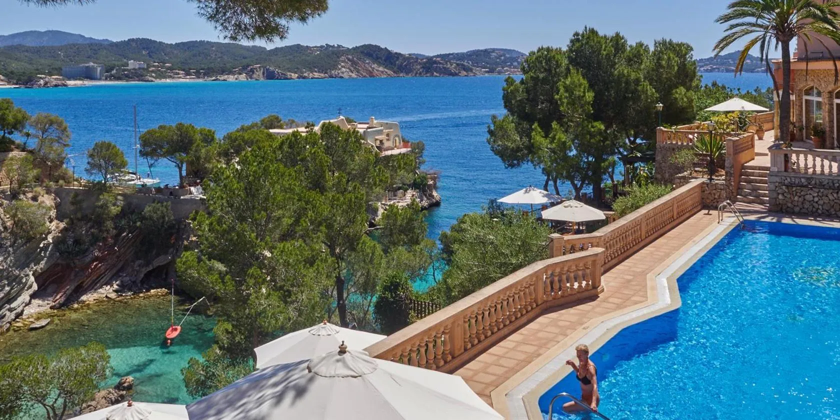 This seafront, adults-only hotel is located in the exclusive residential area of Palma Nova, beside the Blue-Flag Es Carregador beach.