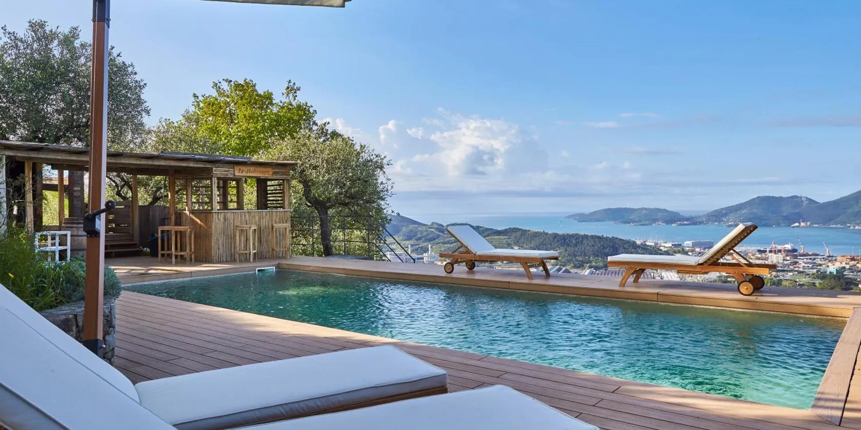 Situated above Levanto, the door to the Cinque Terre, Al Terra di Mare is an eco-friendly and solar-powered property built in the style of a Ligurian hamlet, surrounded by vineyards and olive-trees.