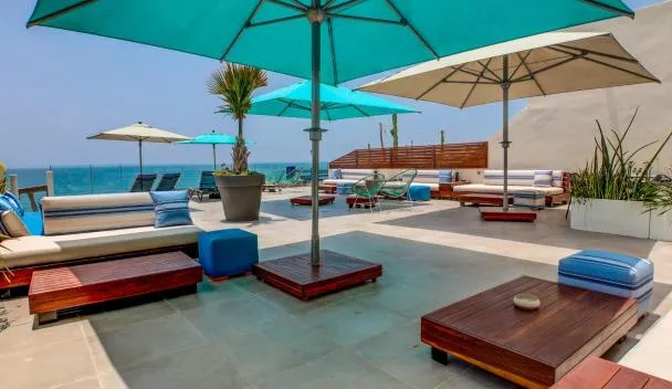Facing the beachfront, Dinosaur Anza Surf House offers 4-star accommodation in Agadir and has a shared lounge, terrace and restaurant.