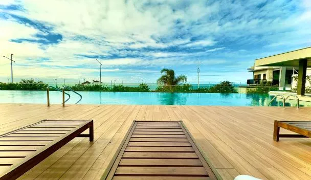 Located in Penha, S402T2 Vista Mar + Beto Carrero | Apto Super Amplo offers a balcony with city and inner courtyard views, as well as an outdoor pool, hot tub and hammam.