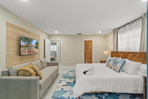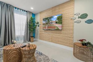 Escape to Miami in this Maldives oasis located in the heart of the city. This stunning home features blue walls and natural accents, creating a serene, beach-like atmosphere. With 5BD/3BTH, a heated pool, and a BBQ area, it’s the perfect retreat for relaxation and luxury. The master bedroom includes a sofa bed for extra guests, and the living room boasts a spacious sofa bed for additional comfort. Enjoy the tranquility and comfort of a paradise getaway without sacrificing urban convenience.