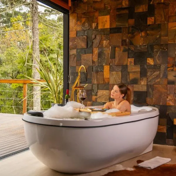 Chalé para casal com hidro e piscina quente Cabana Gaia — это лодж в городе Алфреду-Вагнер. В распоряжении гостей гидромассажная ванна.