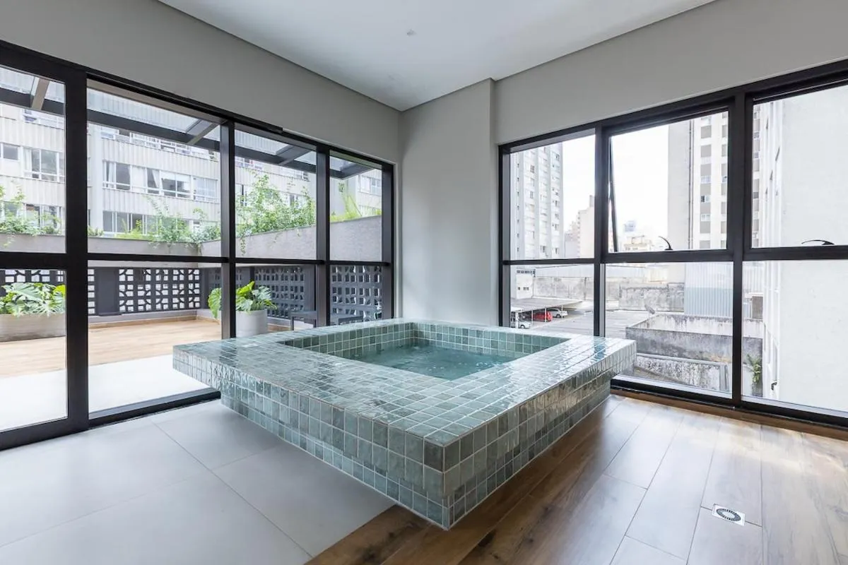 Το Studio Completo e Confortável - Piscina e Academia - Ótima Localização διαθέτει εξωτερική πισίνα, θέα στην πόλη, αίθουσα γυμναστικής και κήπο. Βρίσκεται στο κέντρο του προορισμού Κουριτίμπα.