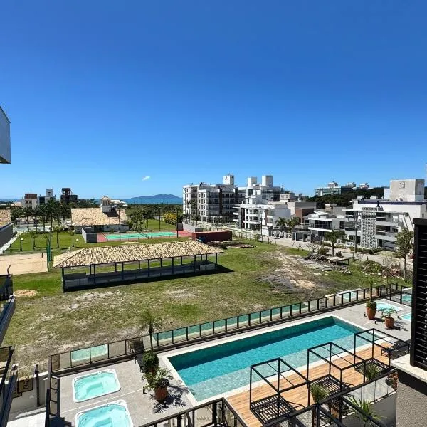 Το Oásis do Atlântico Home Club - Apto Vista Mar para 4 pessoas, που προσφέρει δωρεάν WiFi, κλιματισμό, εξωτερική πισίνα και ιδιωτική παραλία, βρίσκεται σε Governador Celso Ramos.