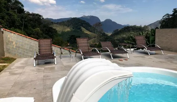 Το Casa de veraneio na serra, το οποίο βρίσκεται σε Nova Friburgo, προσφέρει βεράντα με θέα στο βουνό και στην πισίνα, καθώς και εξωτερική πισίνα, σάουνα και υδρομασάζ.