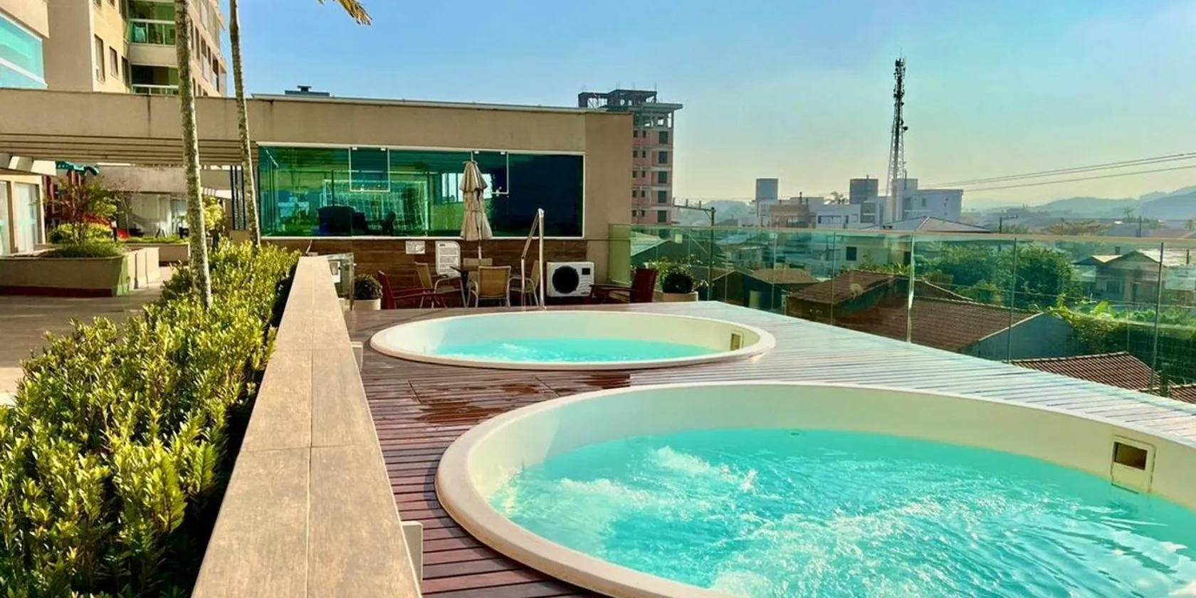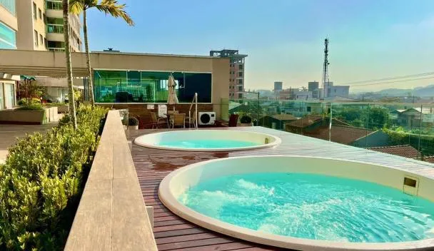 Situated in Piçarras, Bali Beach Home Club RÔGGA Beira Mar - Balneário Piçarras offers a patio with pool and garden views, as well as a year-round outdoor pool, sauna and hot spring bath.