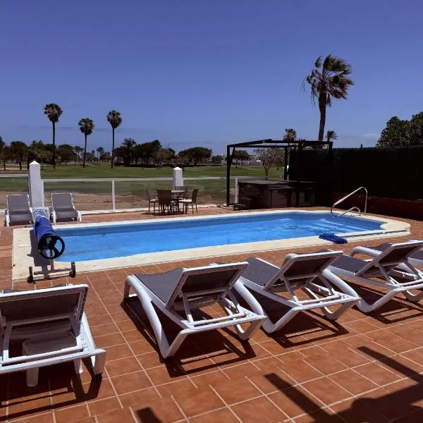 Το Vista Verde, Luxury Family Front Line Golf, Hot Tub, Pool Table, 8 pers, Caleta de Fuste βρίσκεται σε Caleta De Fuste και παρέχει δωρεάν WiFi και θέα στην πισίνα.
