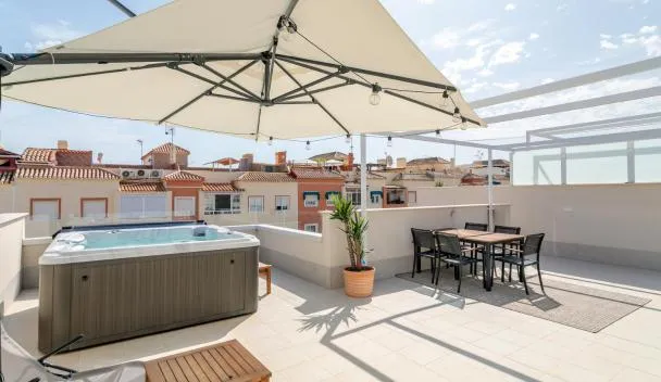 Το Rooftop Terrace, Private Jacuzzi, Heated Pool, που προσφέρει δωρεάν WiFi, κλιματισμό, εποχική εξωτερική πισίνα και βεράντα, βρίσκεται στην Τορεβιέχα.