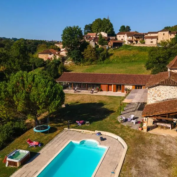 Superbe gîte à la campagne avec grand jardin et spa privé — это дом для отпуска, расположенный примерно в 49 км от такой достопримечательности, как Najac Castle. Из окон открывается вид на сад.