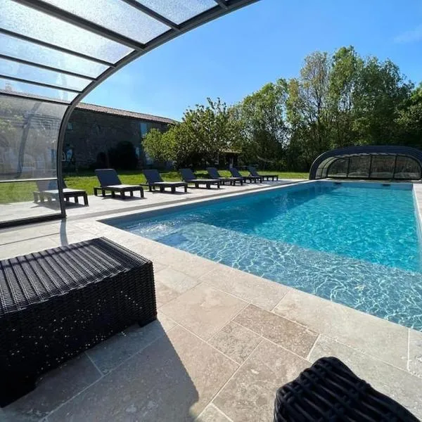 Boasting pool with a view and views of garden, Logis La Folie is a bed and breakfast set in a historic building in Mareuil-sur-Lay, 42 km from Mytiliculture Museum.