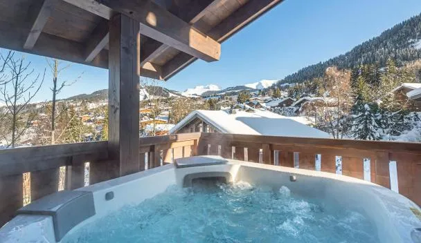37 km from Halle Olympique d'Albertville in Megève, Chalet Ysalpe - Vue montagne hammam sauna jacuzzi et salle cinéma features accommodation with access to a sauna, hot tub and steam room.