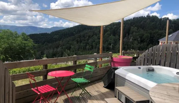 Located in Muhlbach-sur-Munster, 27 km from Colmar Train Station, Les chalets perchés provides accommodation with a sauna and a hot tub.