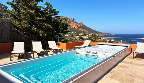 Το Les Oliviers de l'Esterel, το οποίο βρίσκεται σε Saint-Raphaël, προσφέρει βεράντα με θέα στη θάλασσα και στο βουνό, καθώς και εξωτερική πισίνα, σάουνα και υδρομασάζ.