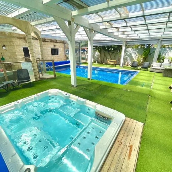 Featuring air-conditioned accommodation with a private pool, אחוזת סנטוריני - וילה מהממת עם בריכה מחוממת מקורה וג'קוזי בעין יעקב is set in ‘Ein Ya‘aqov.