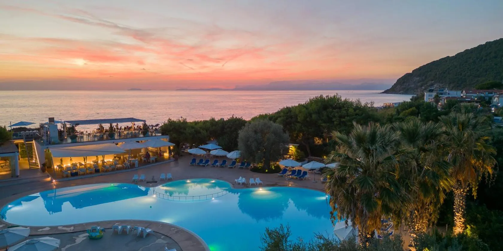 Enjoy stunning sea views and romantic sunsets from the garden of Mareluna Hotel, located on the seafront at San Marco di Castellabate. This elegant Art Deco style building has a striking pink façade.