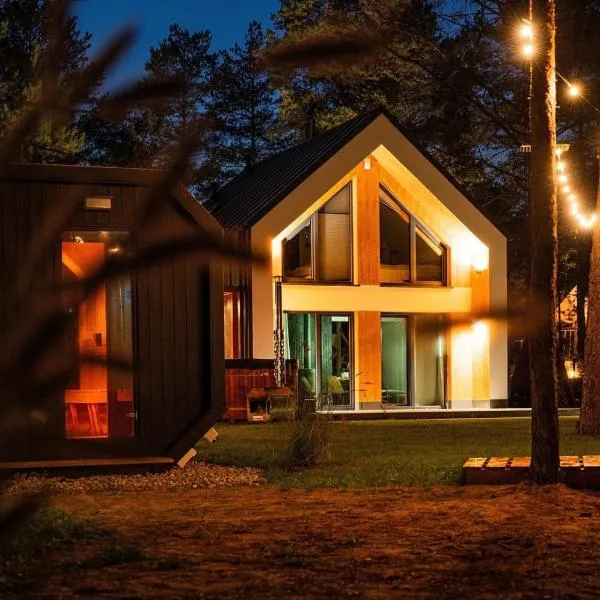Domki PRZY LEŚNICZÓWCE, a property with a garden, is located in Wiele, 49 km from Tuchola Forests, 28 km from Kaszuby Ethnographic Park, as well as 28 km from Bory Tucholskie National Park.