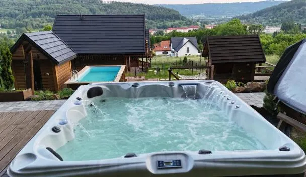 Το Bieszczadzka Osada Saunowisko w cenie jacuzzi na wyłączność, sauna basen διαθέτει καταλύματα με δωρεάν WiFi, κήπο με εποχική εξωτερική πισίνα, θέα στο βουνό, καθώς και πρόσβαση σε σάουνα και...