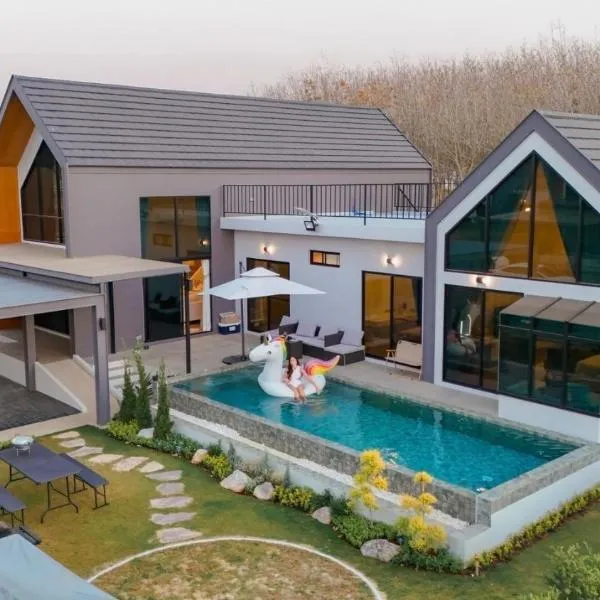 Το Banrao Pool Villa Khaoyai บ้านเราพูลวิลล่าเขาใหญ่ προσφέρει εξωτερική πισίνα και κλιματισμό. Είναι σε Ban Tha Maprang, ενώ απέχει 43 χλμ από Εθνικό Πάρκο Khao Yai και 8 χλμ από Φυσική Πηγή Nam...