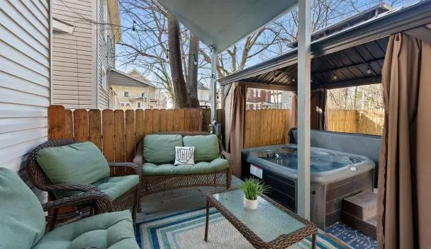 Το Hot Tub - Mins to Short North - Retro Game Room είναι ένα κατάλυμα με κήπο και μπαρ.