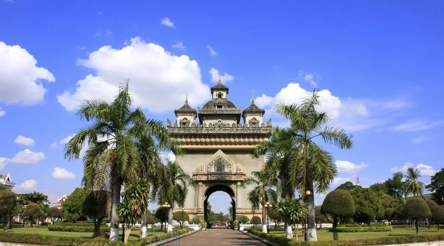 The victory gate of Vientiane, built using US funds intended for a new city airport, is a huge 1960s cement edifice commemorating victims of war. Surrounded by palms, lotus ponds, and a spectacular fountain, the four-gated archway dominates Patuxai park. Visitors can admire the elegantly painted underbelly of the tower from below, or climb seven stories of stairway for a more expansive view.