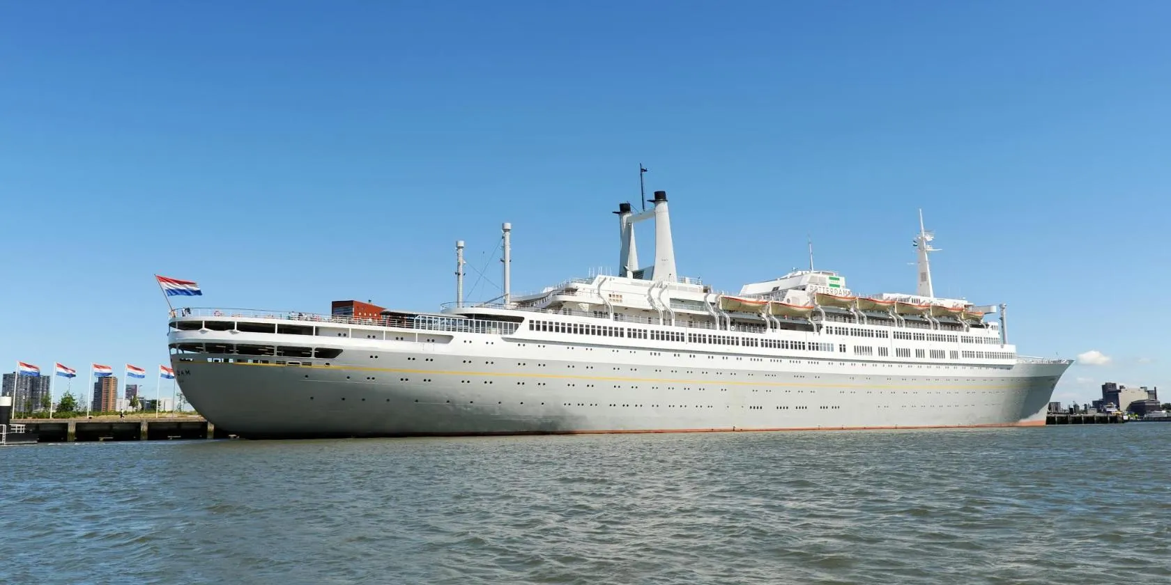 Discover ss Rotterdam, a former Holland-America Line ship, presenting cozy accommodations by the harbor in the vibrant Katendrecht district.