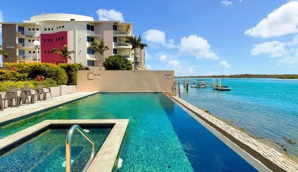 Το Spinnaker Quays βρίσκεται ακριβώς απέναντι από την παραλία Mooloolaba και προσφέρει ευρύχωρα διαμερίσματα και θερμαινόμενη πισίνα με υδρομασάζ.