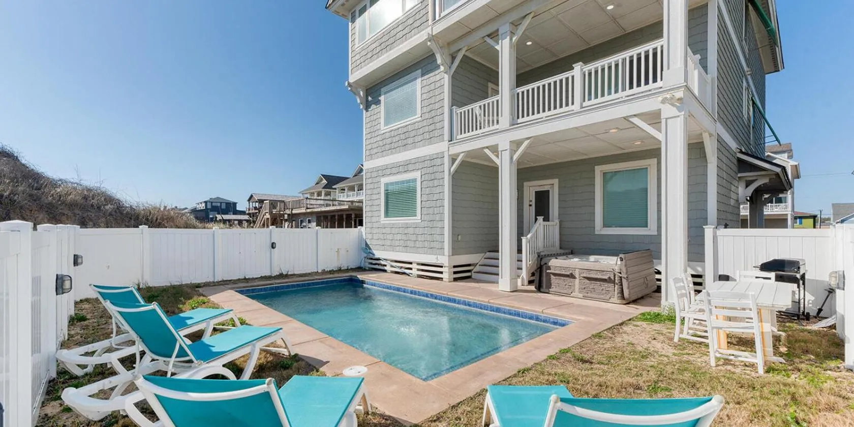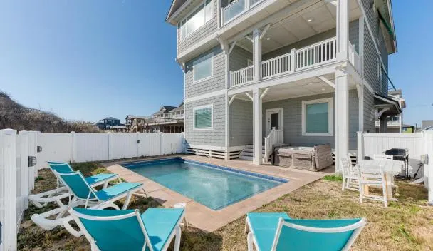 Located next to the Nags Head Pier, this oceanfront property features an outdoor pool and direct beach access.