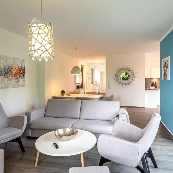 Situated just 36 km from Fleesensee, Atempause - Stilvolles Apartment mit Terrasse & Wellness am Krakower See features accommodation in Krakow am See with access to a fitness centre, a garden, as well...