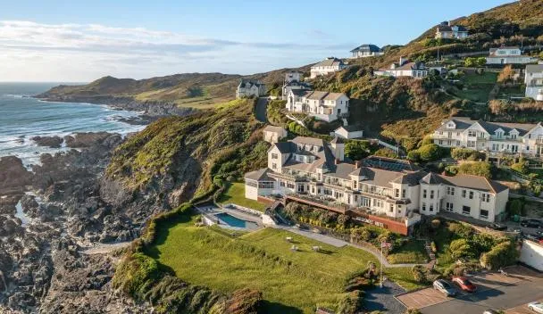 Boasting a seafront location, just 3-minute walk from Woolacombe Beach, The Woolacombe Bay Hotel offers a spa, indoor and outdoor pools, fitness centre and restaurant.