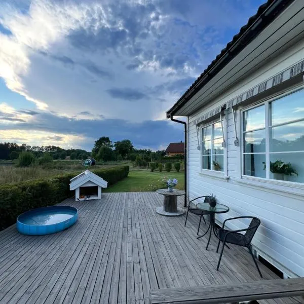 Located in Fevik, 500 metres from Lille Moviga Beach and 8.7 km from The Ibsen House, Sjarmerende og solrikt hus nær strender på Fevik offers a garden and air conditioning.