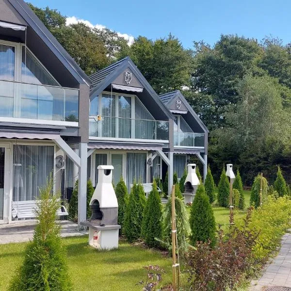 Cisowy Zakątek ligt in een groene omgeving op 5 km van het rustige strand aan de Oostzee en biedt moderne designbungalows met een eigen sauna.