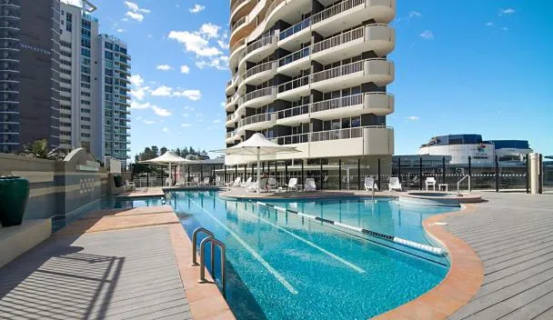 Featuring air-conditioned accommodation with a saltwater pool, mountain view and a patio, 5th Floor Beachside Ocean View with Wi-Fi, Pool and Gym is located in Gold Coast.