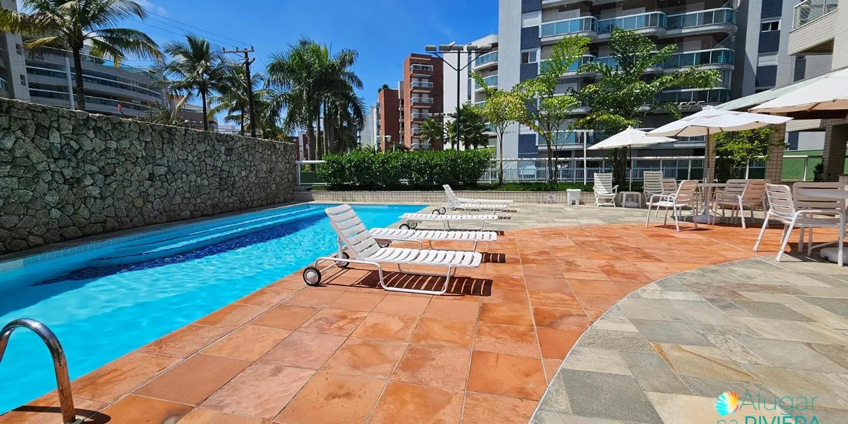 Το Riviera de São Lourenço Apto Completo com Churrasqueira Serviço de Praia Piscina aquecida Sauna salão de jogos e quadra, που προσφέρει δωρεάν WiFi, κλιματισμό, εξωτερική πισίνα και κήπο, βρίσκεται...