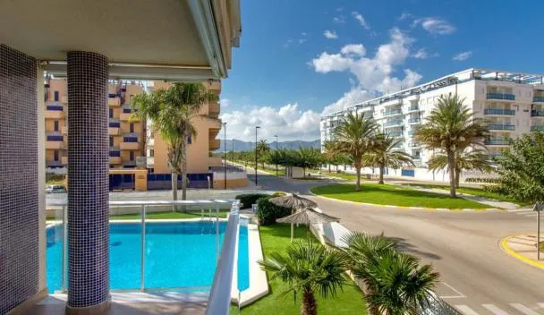 Το Apartamento 1ª línea playa con piscina y parking προσφέρει δωρεάν WiFi, κήπο και κλιματισμό. Βρίσκεται σε Daimuz, ενώ απέχει 200μ από Παραλία Daimús και 15 χλμ από Oliva Nova Golf.