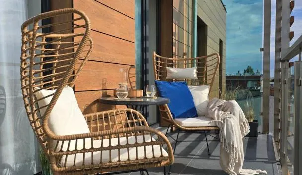 Το Apartamenty Wyspa Solna by Vacation Rental - basen, sauna, jacuzzi, siłownia w cenie διαθέτει καταλύματα με δωρεάν WiFi, κήπο με βεράντα, θέα στο ποτάμι, καθώς και πρόσβαση σε εσωτερική πισίνα και...