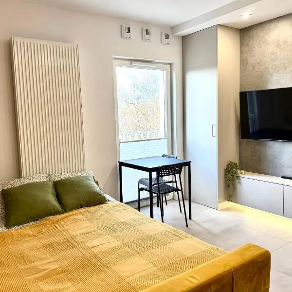 Το Apartament 1 pokojowy - Kawalerka z klimatyzacją, garażem podziemnym είναι ένα κατάλυμα με βεράντα, το οποίο βρίσκεται στη Βαρσοβία, σε απόσταση 10 χλμ από Μνημείο Εξέγερσης της Βαρσοβίας, 10 χλμ...