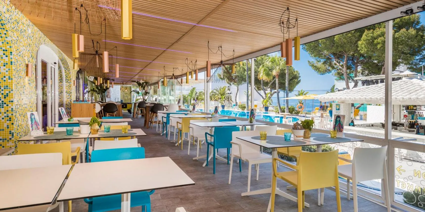 This seafront, adults-only hotel is located in the exclusive residential area of Palma Nova, beside the Blue-Flag Es Carregador beach.