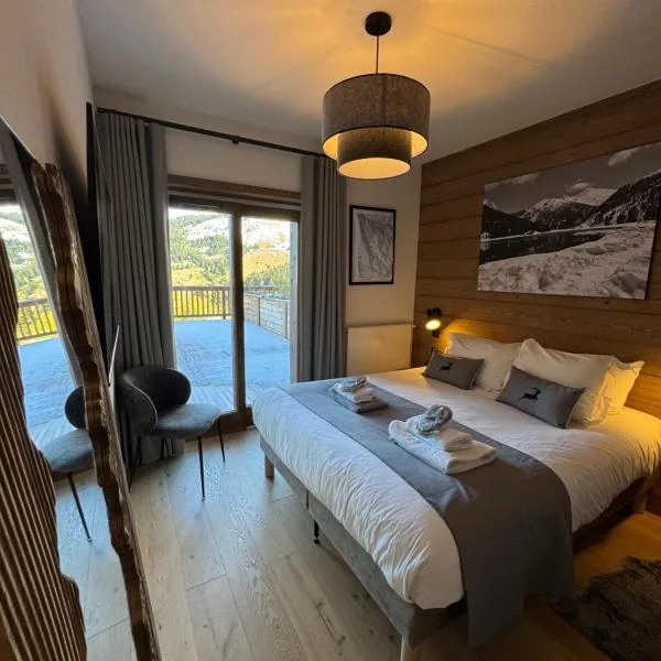 Το le home du Morel et son jacuzzi βρίσκεται σε Bellecombe και προσφέρει δωρεάν WiFi και θέα στο βουνό. Έχει επίσης κήπο, κοινόχρηστο χώρο lounge και βεράντα.