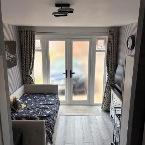 يوفر مكان إقامة "Shepherds hut in 7 acre field" إطلالة على الحديقة وتراس وشرفة، ويبعد مسافة 22 كم تقريباً عن ستاد النور.